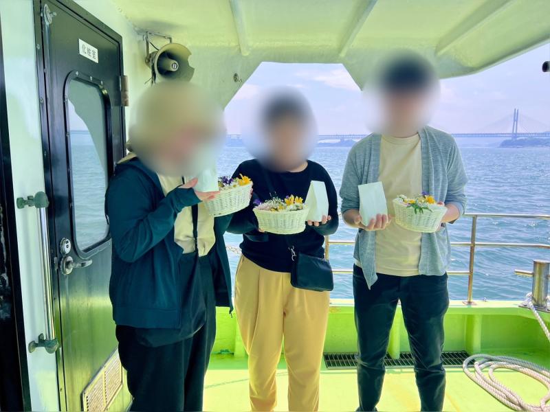 今回は、3名様ご乗船で瀬戸内海、児島沖で海洋散骨を行わさせていただきました。
