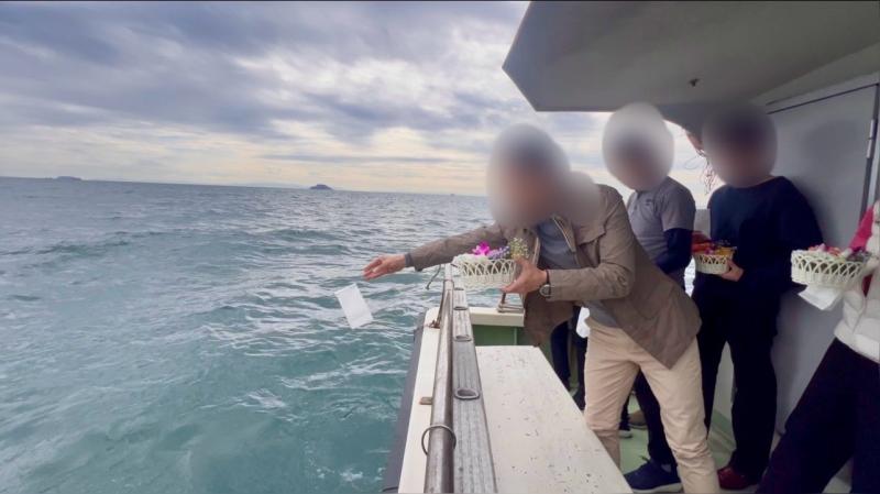 今回は、7名様ご乗船で瀬戸内海、姫路沖で海洋散骨を行わさせていただきました。