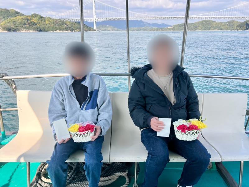 今回は、2名様ご乗船で瀬戸内海、尾道沖で海洋散骨を行わさせていただきました。