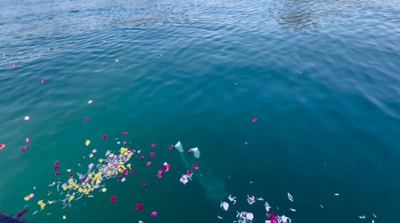 今回は、15名様ご乗船で瀬戸内海、尾道沖で海洋散骨を行わさせていただきました。